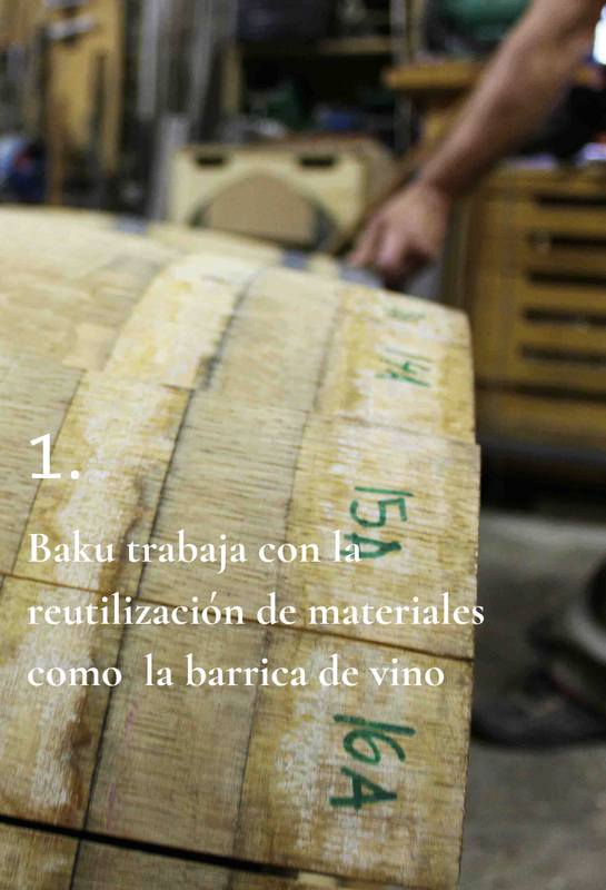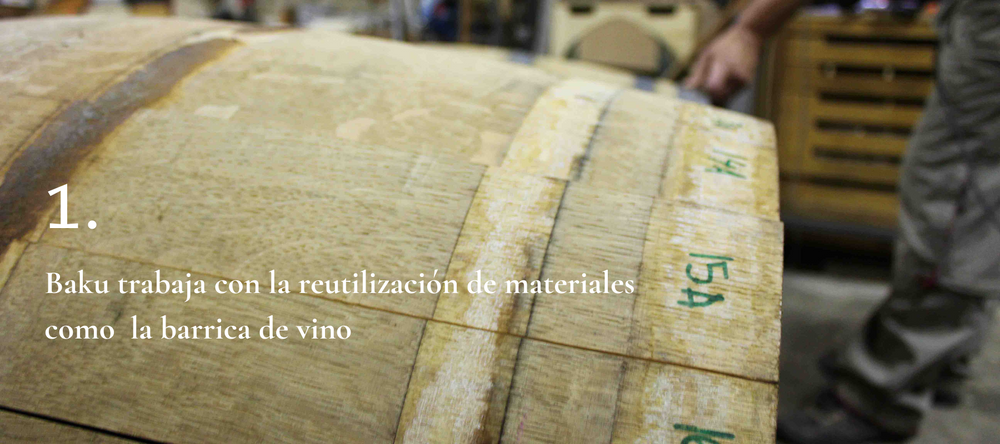 Nuestro objetivo principal fue reutilizar el roble de las barricas de vino, por su calidad y nobleza. Pero poco a poco hemos ido introduciendo más materiales en nuestro productos y actualmente podemos decir orgullosos que contienen un 85% de material reutilizado.