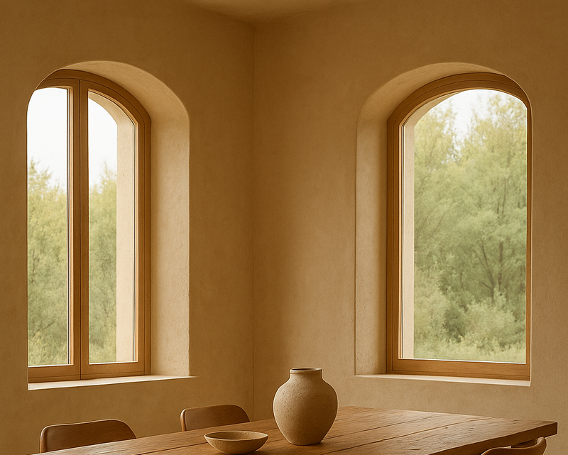 El estuco de cal es un revestimiento mineral 100% natural que regula la humedad, purifica el aire y aporta carácter a cualquier superficie, ya sea en paredes interiores, fachadas o techos. Su aspecto ligeramente mate y mineral aporta profundidad y luminosidad.